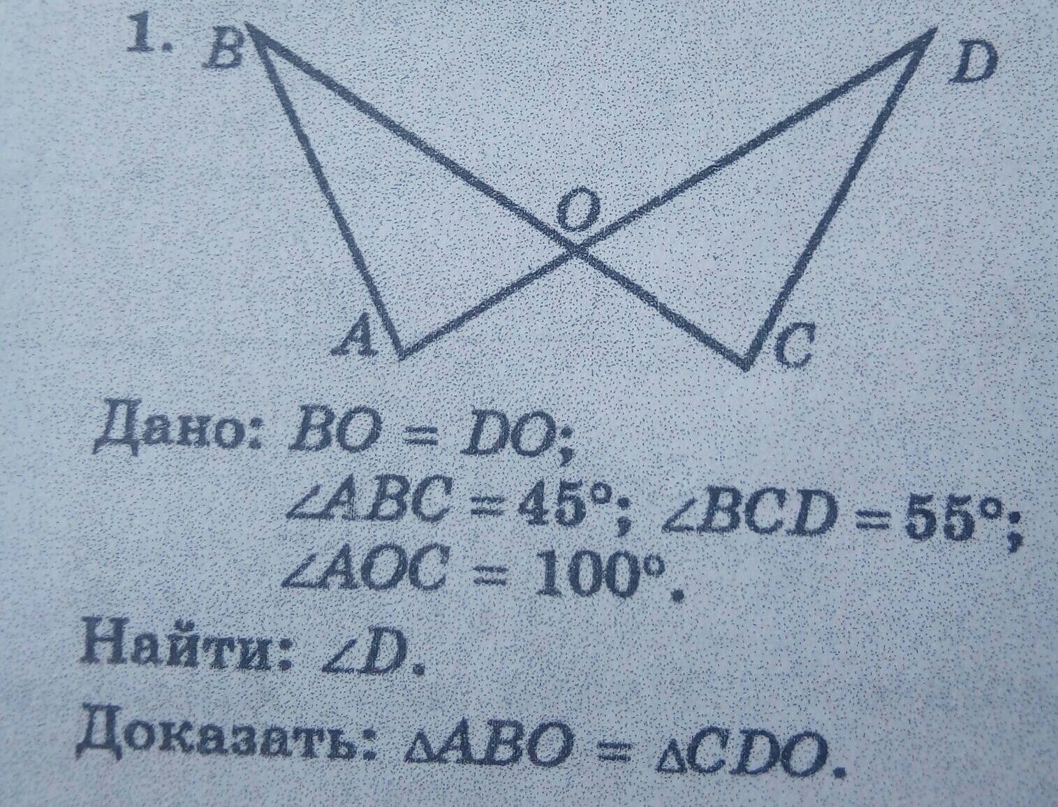 ∠АОС = ∠BСD + ∠D → ∠D = ∠AOC - ∠BCD = 100 - 55 = 45