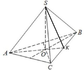 Из условия SA=SB=SC=13 см; ABC - правильный треугольник; AC=BC=AB=10 см. Найдем высоту одной из граней. Например, рассмотрим треугольник SBC: SK - высота грани; CK = BK = BC/2 = 5 см