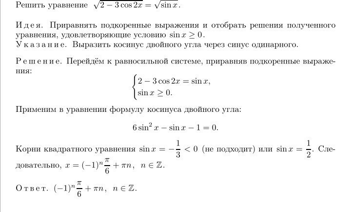 А да, я прочла первый корень у вас без n. То что в решении данного уравнения, это, как говорится, два в одном. Я думаю, что вы уже поняли, что это одно и то же. В ЕГЕ встречались ответы, записанные и в общем виде.