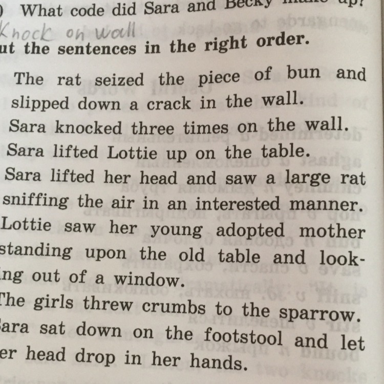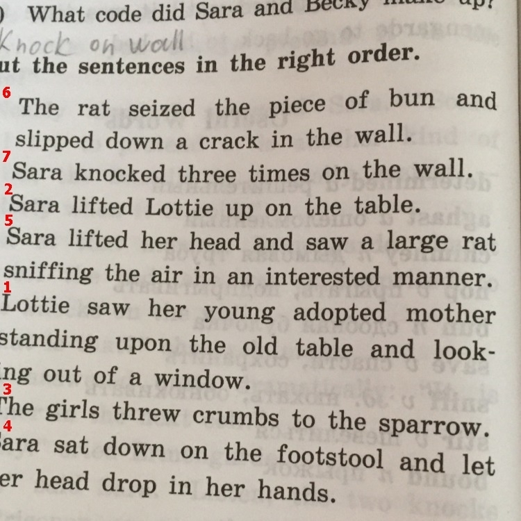 7) Sara knocked three times on the wall.