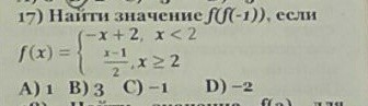 сначала аргумент: f(-1) = -(-1)+2 = 1+2 = 3 (т.к. -1<2)