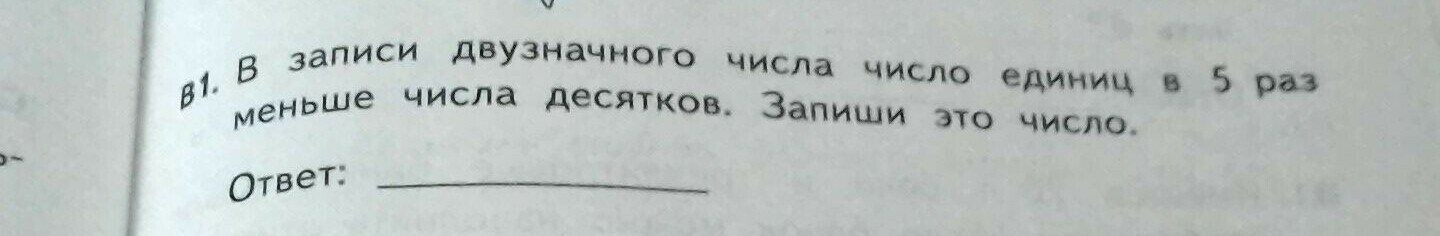 в записи двузначного числа число единиц в 5 раз меньше числа десятков запиши это число.