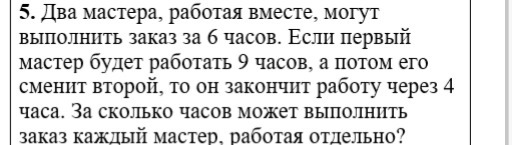 Пусть 1 - это весь заказ, тогда получаем систему двух уравнений