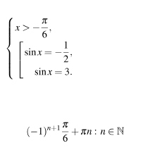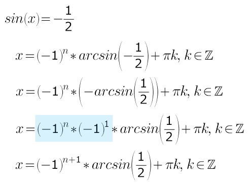 Если sinx= отрицательному числу(-1/2), то будет (-1)^n+1