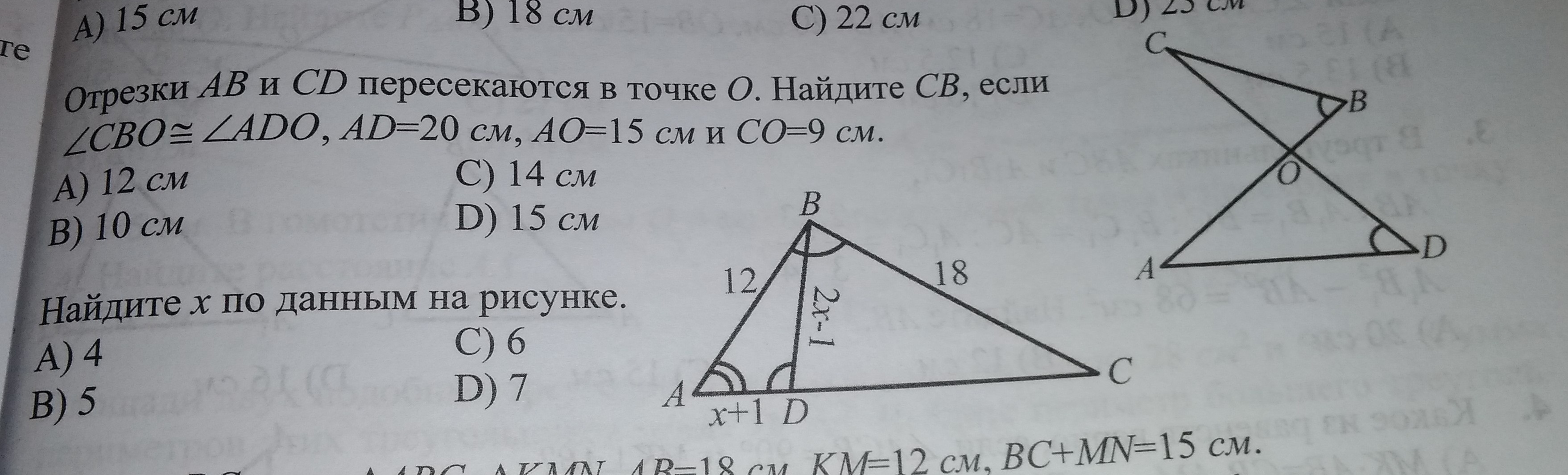 CB/AD = CO/AO <=> CB= AD*CO/AO =20*9/15 =12
