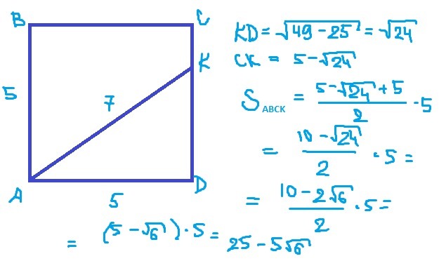 DK^2 = AK^2 - AD^2 = 49 - 25 = 24