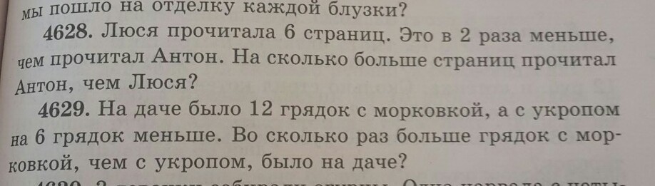 Антон прочитал на 12-6=6 страниц больше, чем Люся.