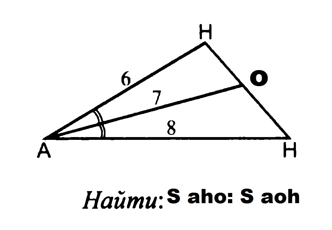 Так как высота из точки А на противоположную сторону у двух треугольников одинакова, то их площади пропорциональны отрезкам стороны НН и, следовательно, сторонам 6 и 8 или это 3/4.