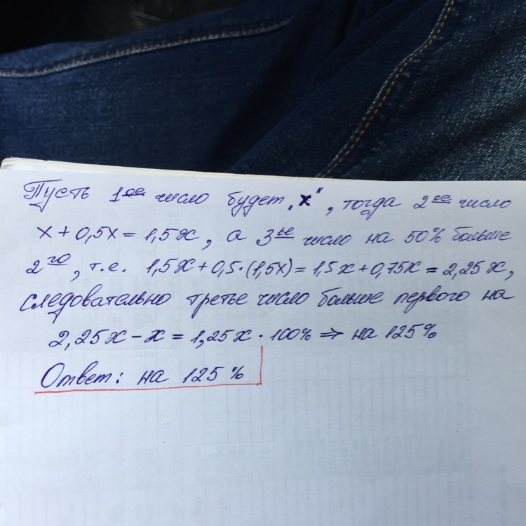 второе число на 50% больше первого и на 50% меньше третьего на сколько % третье больше чем первое