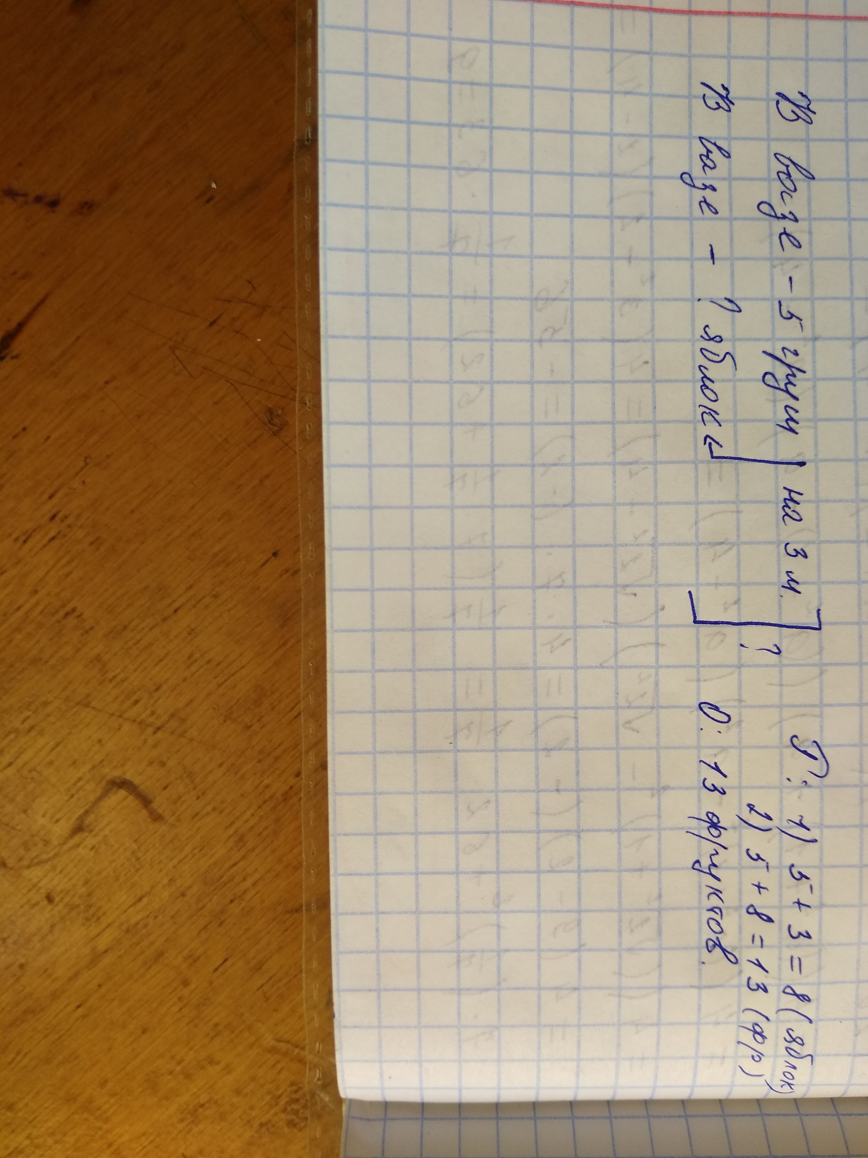 Решите пожалуйста задачу чтоб было решение задачи и условия.В вазе лежало 5груш,что на 3 меньше,чем яблок.Сколько фруктов лежало в вазе.