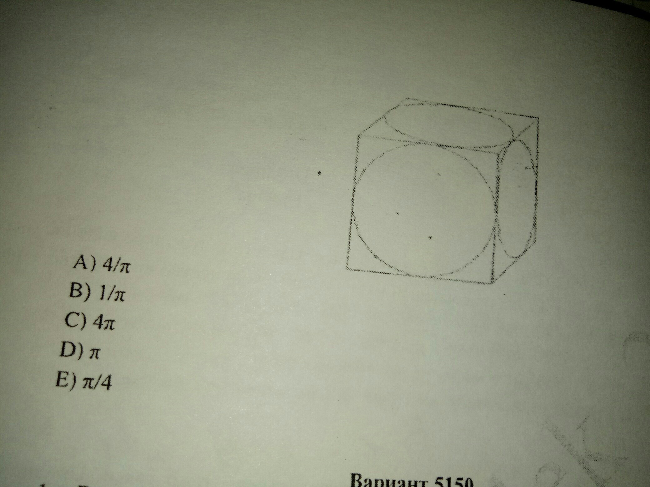 В каждую грань куба вписана окружность. Найдите отношение площади поверхности куба к сумме площадей кругов, ограниченных построения окружности, если ребро куба равно 4
