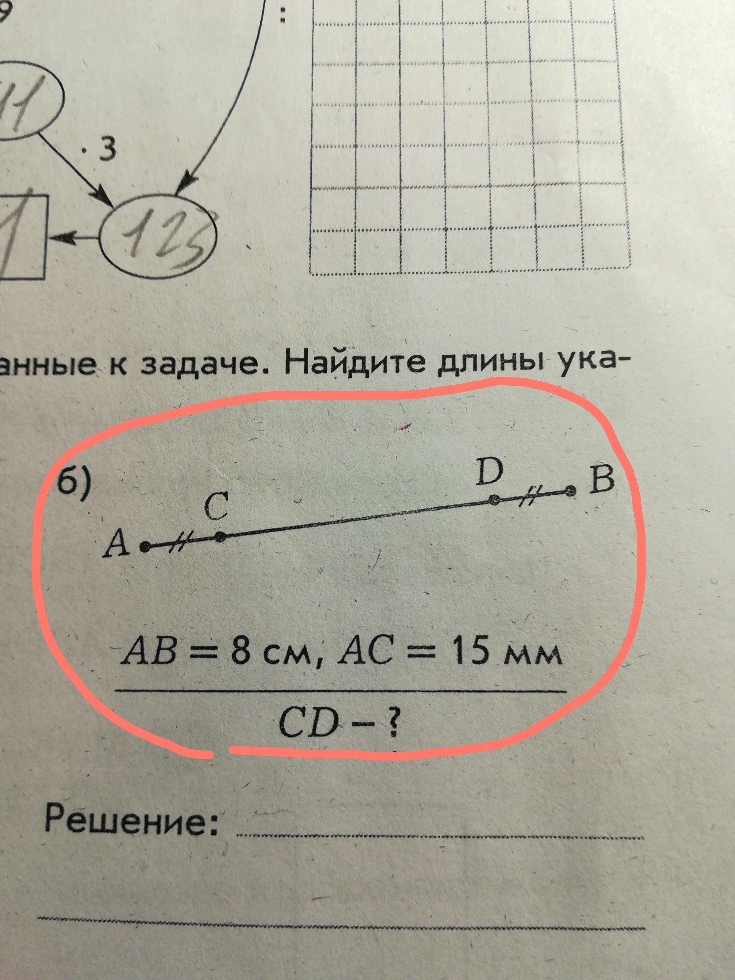 1. AB - AC = 8 см - 15 мм = 80 мм - 15 мм = 65 мм = CB;