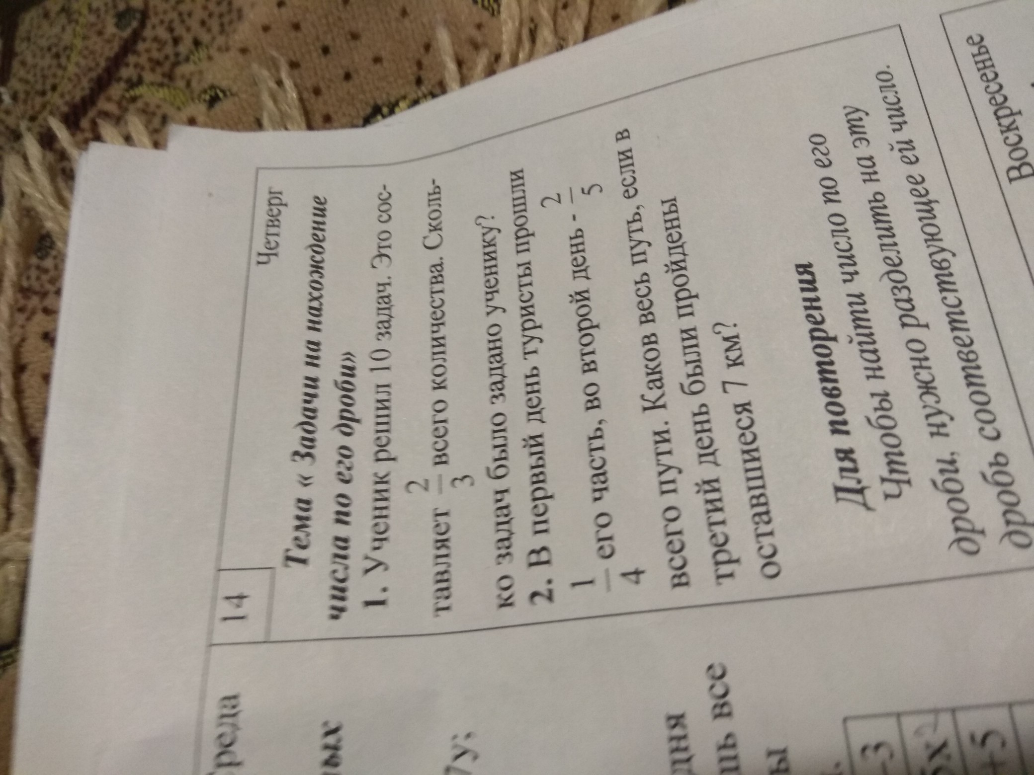 2) 1/4+2/5=5/20+8/20=13/20 пути - прошли за 1 и 2 день в сумме