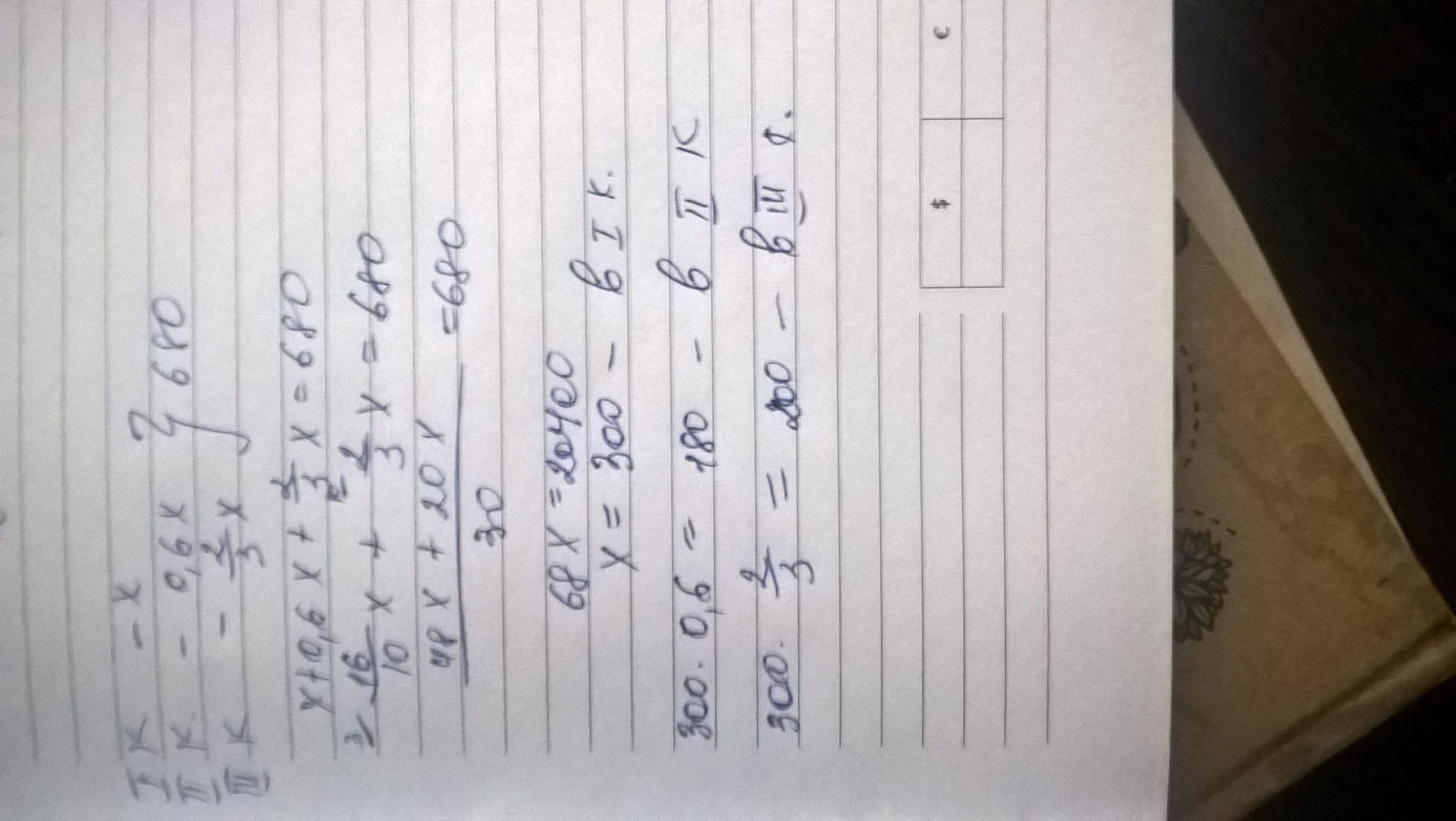 Пусть х страниц в первой книги, тогда во второй 0,6х, а в третьей (2/3)х. Всего в трёх книгах 680 страниц. Составим уравнение: