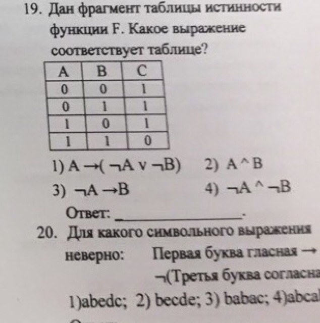 19) в заголовке приведённой таблице истинности вместо С читай F
