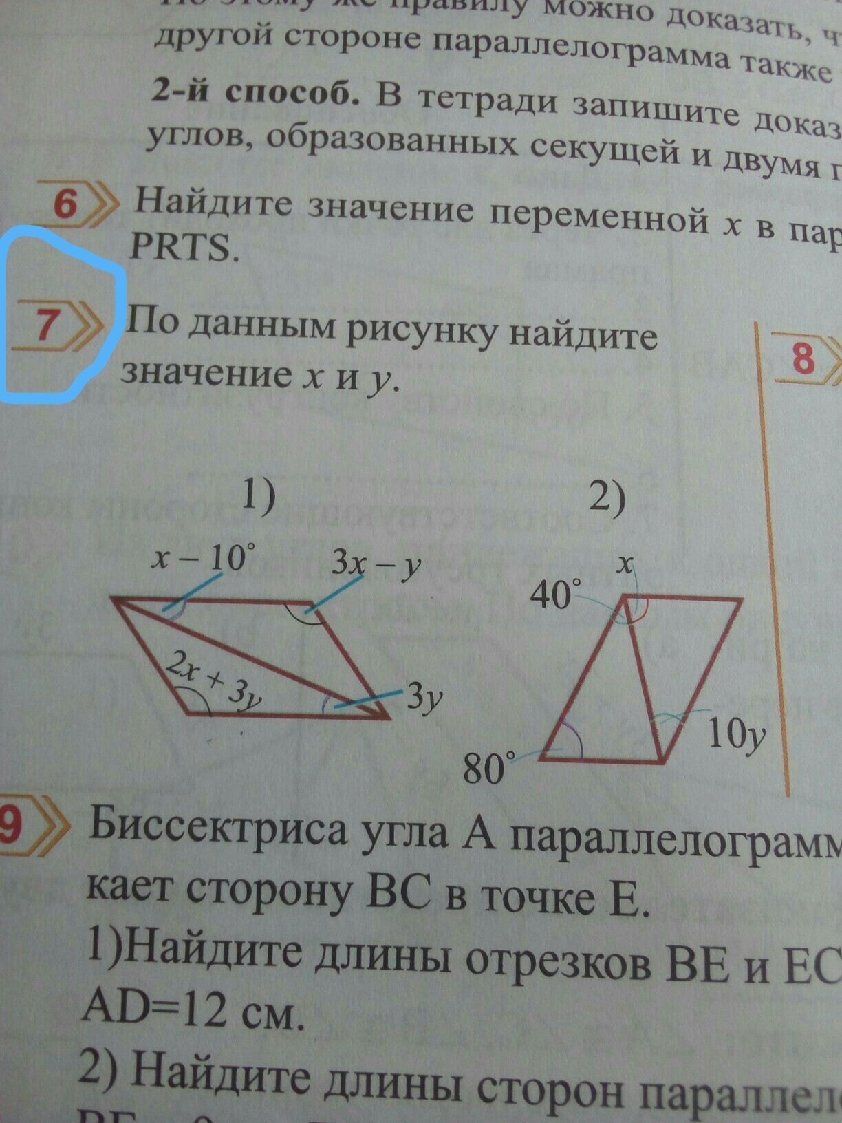 2) 10y=40, y=4°, х=180-80-40=60°