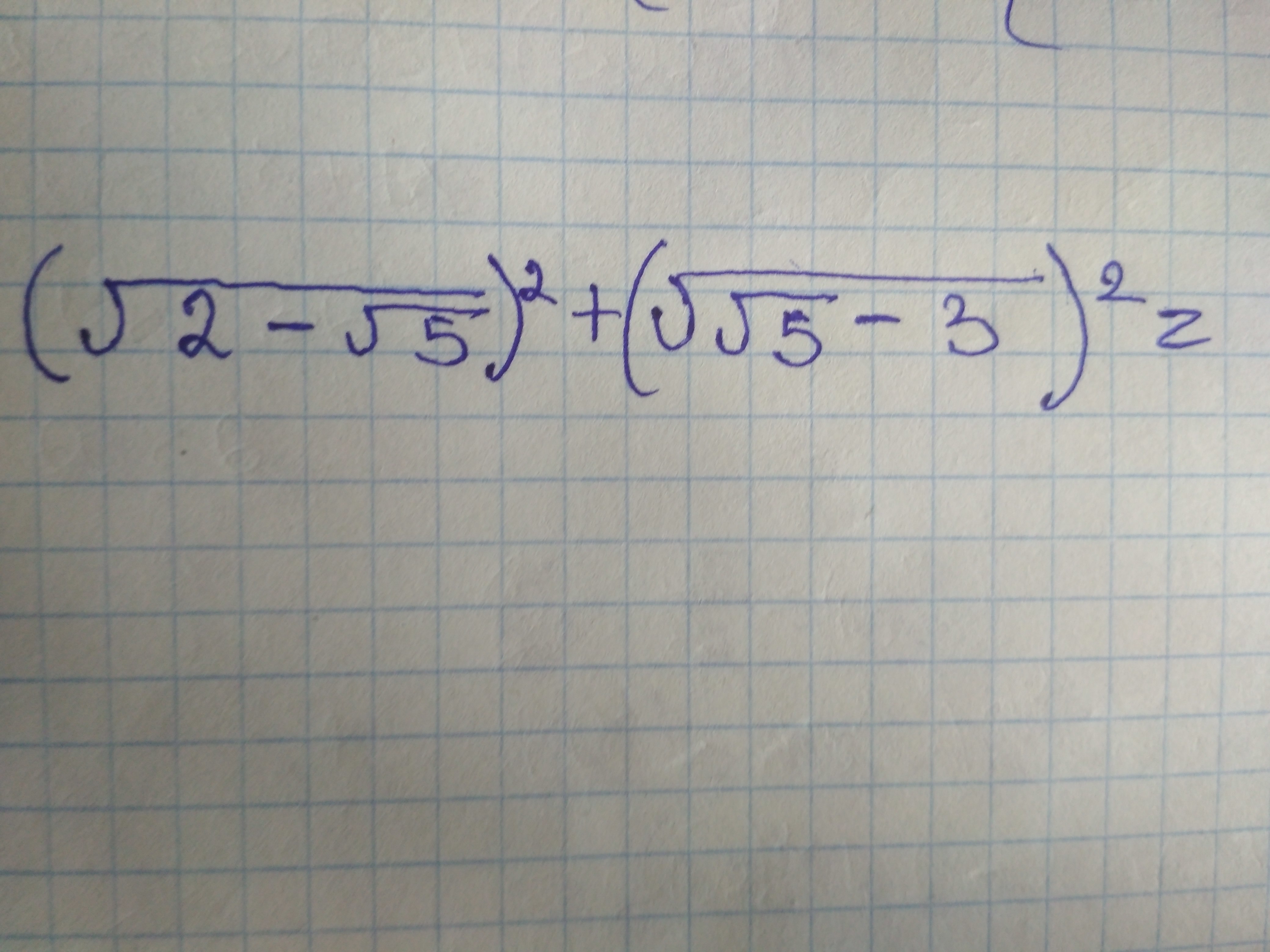 {( sqrt{2 -  sqrt{5} }) }^{2}  +  {( sqrt{ sqrt{5}  - 3}) }^{2}  =   |2 -  sqrt{5} |  +  | sqrt{5} - 3 |  =  - (2 -  sqrt{5} ) -  ( sqrt{5}  - 3) =  - 2 +  sqrt{5}  -  sqrt{5}  +  3 = 3 - 2 = 1