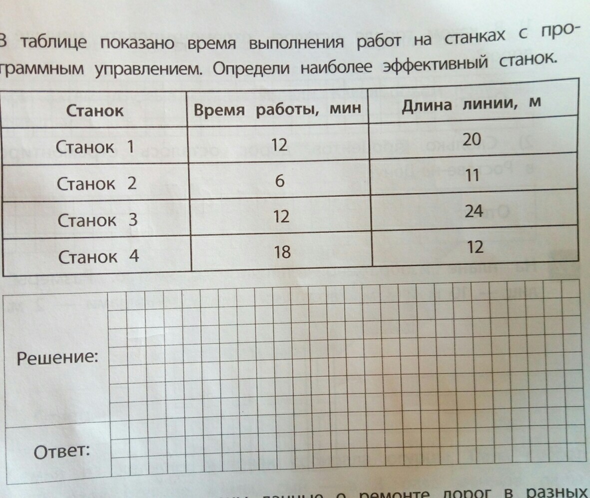 В таблице показано время выполнения работ на станках с программным управлением. Определи наиболее эффективный станок.