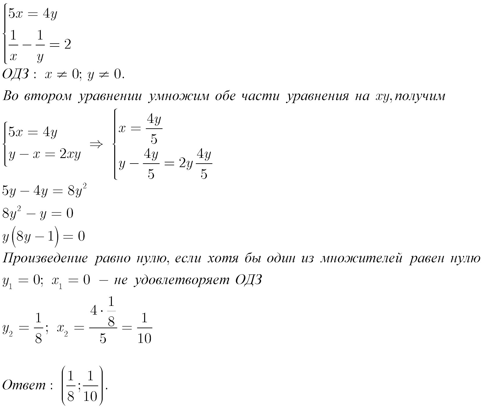 y = 1/8 x = 4/8 : 5 = 1/10
