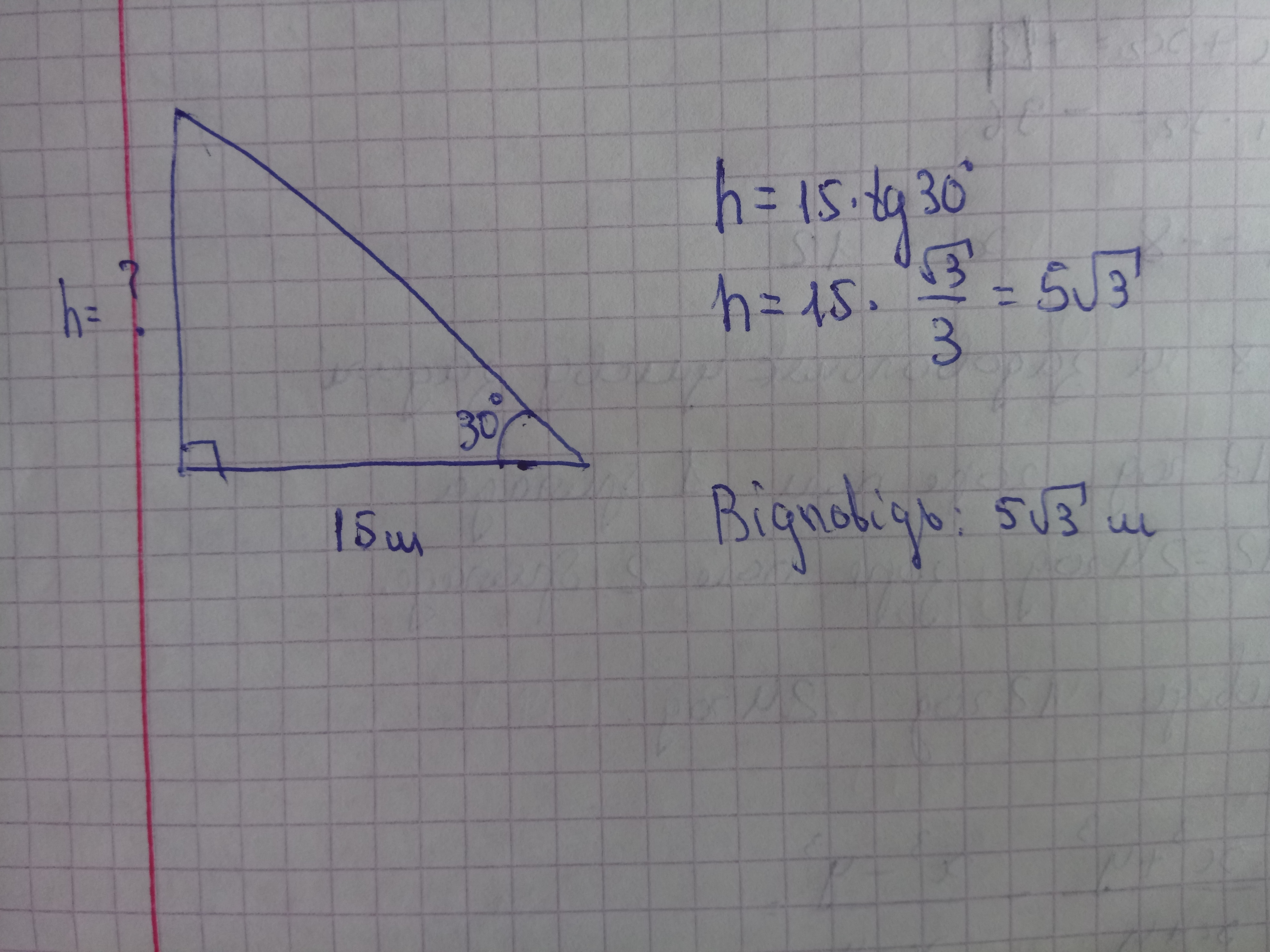 Довжина тіні дерева = 15м .Напрямок променів Сонця утворує 30 з поверхнею Землі..Яка висота дерев =?