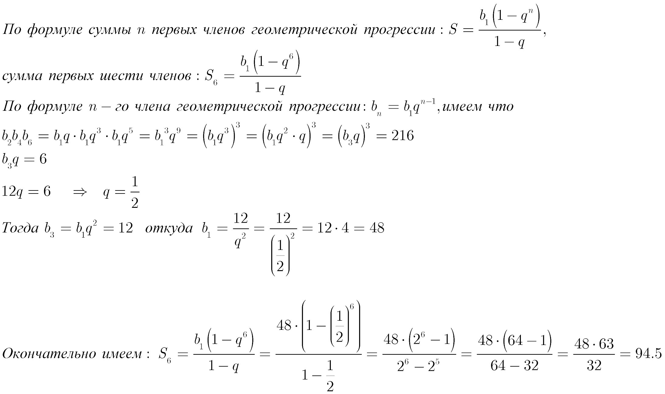 S=b1/(1-q)=48/(1-1/2)=48*2=96
