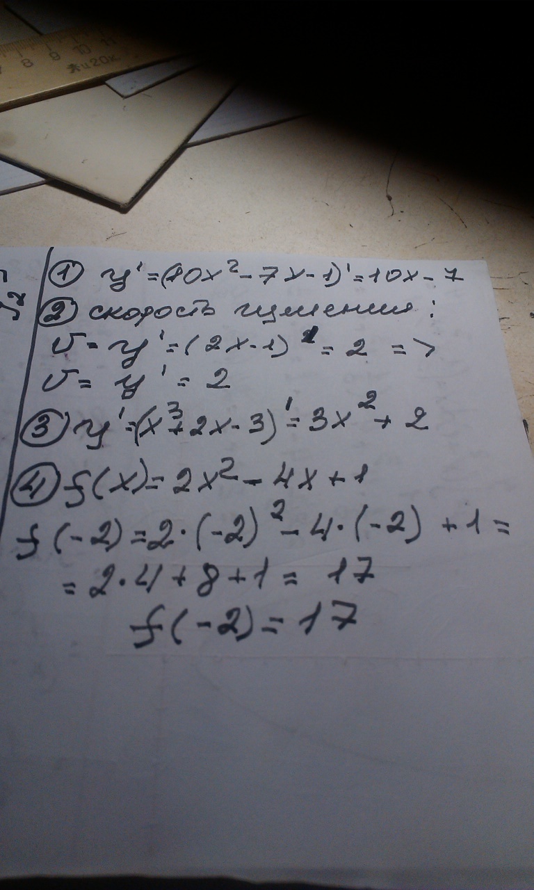 1. Знайдiть похiдну функцii у=5х^2-7х+4