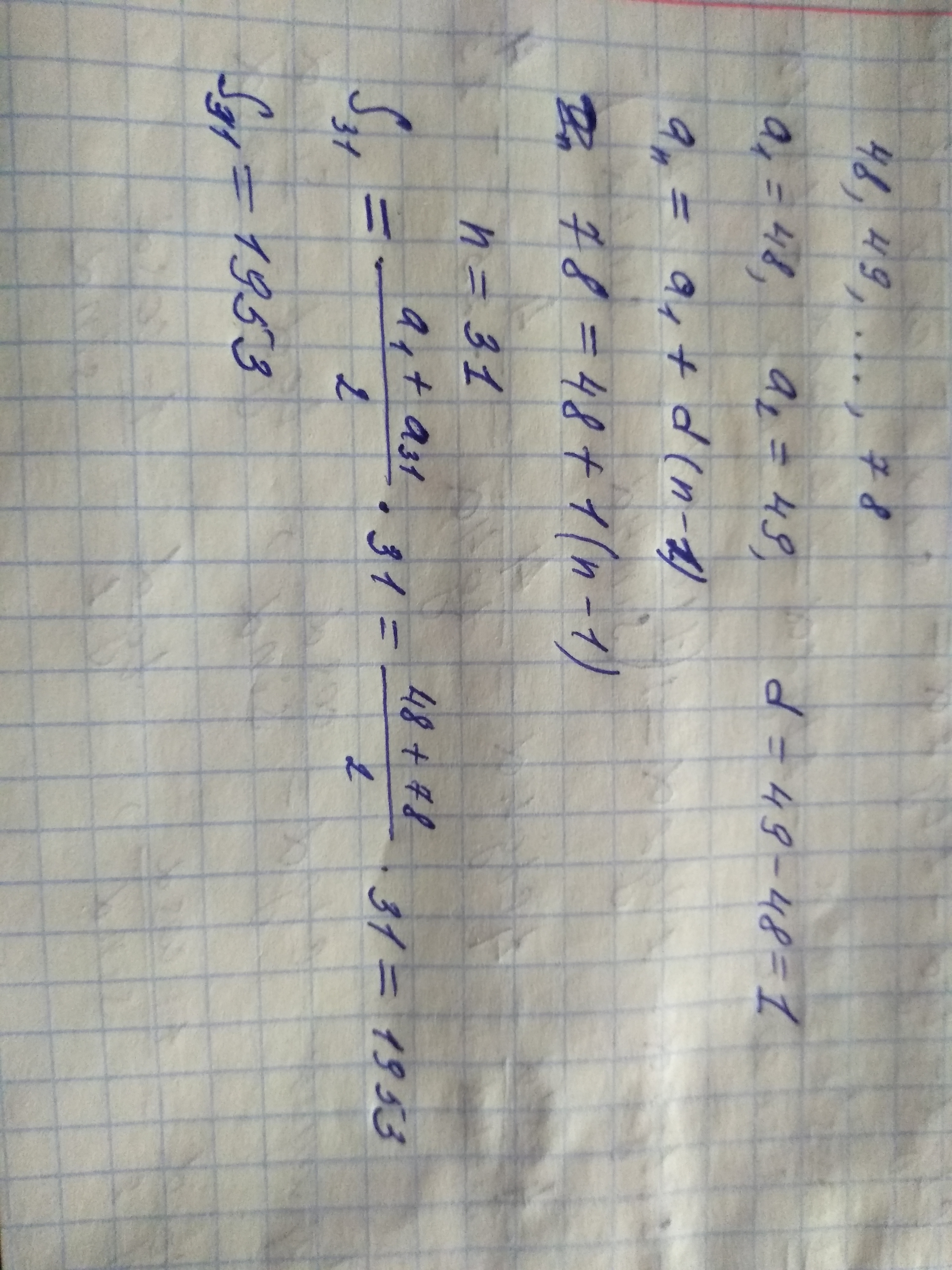 48, 49, ... , 78 - арифметическая прогрессия с первым членом и разностью прогрессии