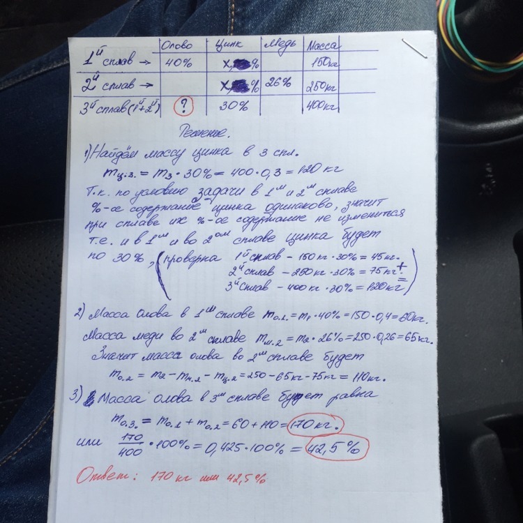 Есть два сплава, которые состоят из цинка, меди и олова. Известно, что первый сплав имеет 40% олова, а второй - 26% меди. Процентный состав цинка в первом и втором сплавах одинаковый. Если сплавить 150 кг первого сплава и 250 кг второго, то получим новый сплав, в котором будет 30% цинка. Сколько олова находится в полученом новом сплаве?