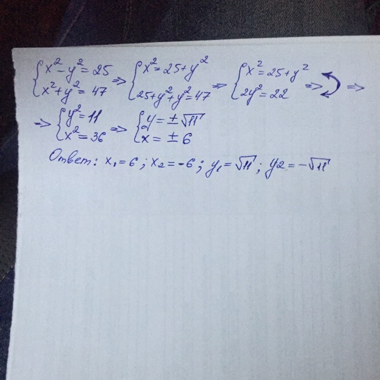 Ответ: (6; √11); (6; -√11); (-6; √11); (-6; -√11)
