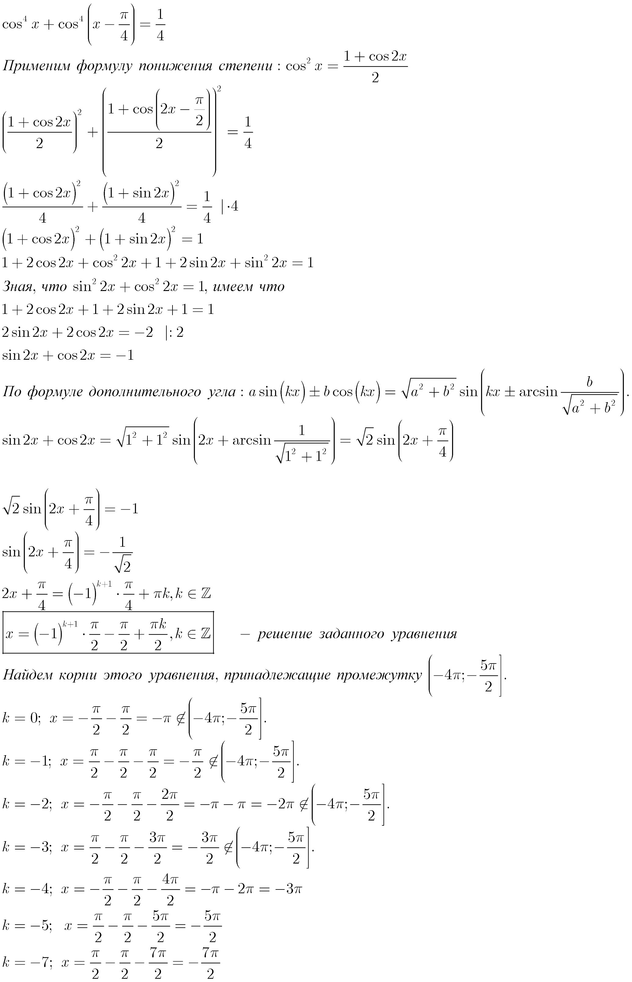 Найдите корни этого уравнения, принадлежащие промежутку ( − 4 П;− 5П /2 ]