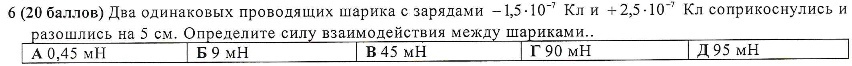 Суммарный заряд (2,5-1,5)*10^(-7) делится поровну между шариками по