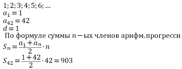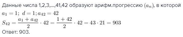 Данные числа 1,2,3,...,41,42 образуют арифм.прогрессию , в которой