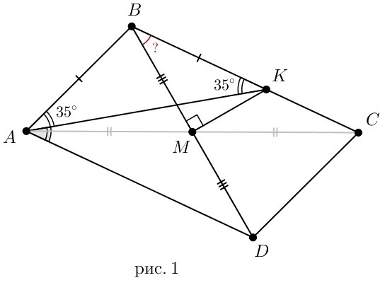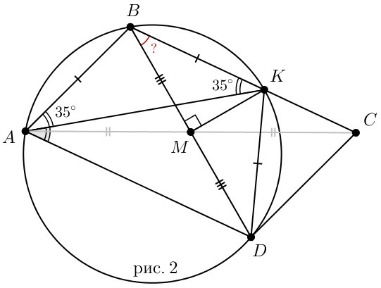 точку K так, что угол BMK прямой. Оказалось, что BK = AB.