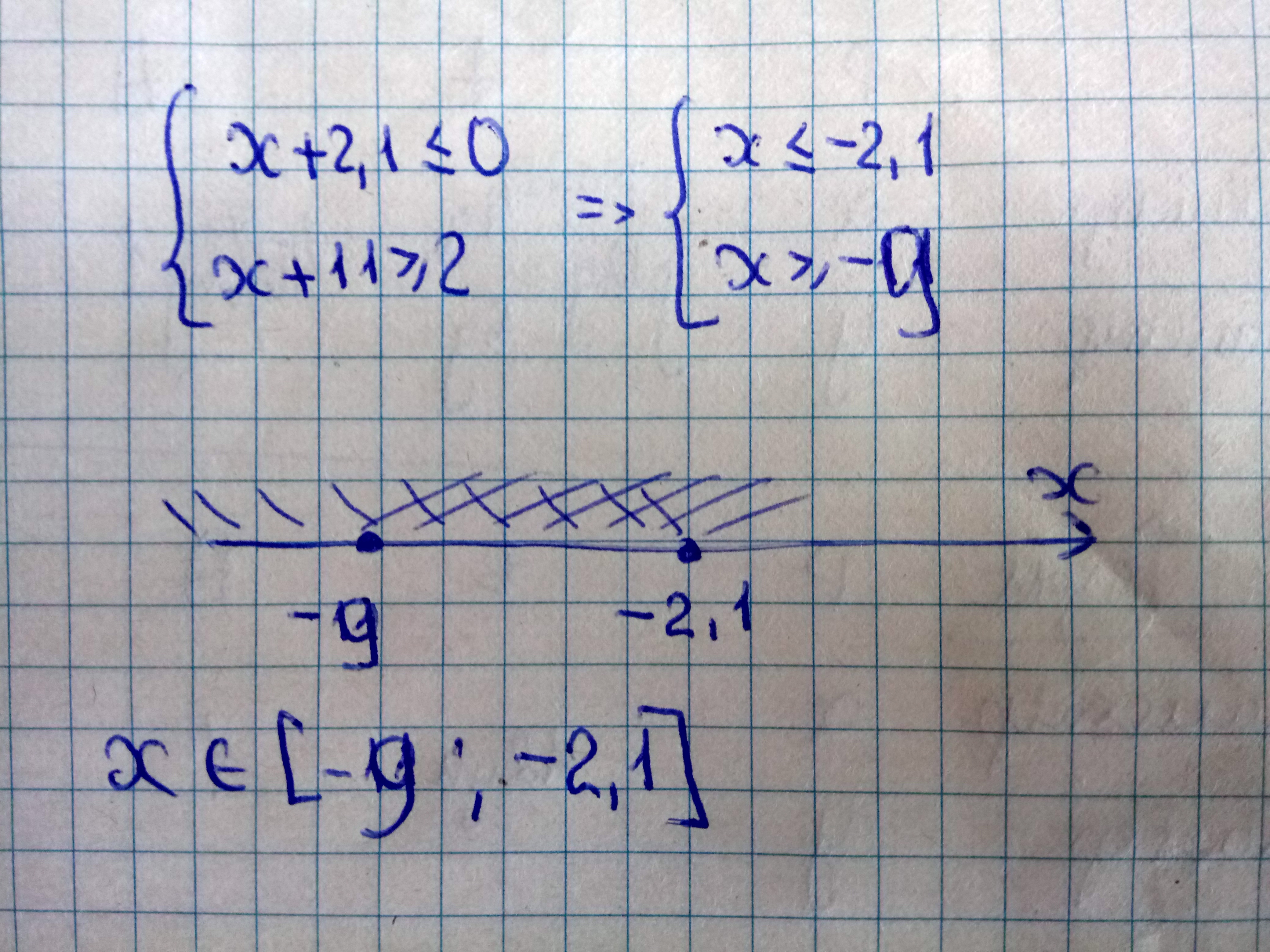 Укажи решение системы неравенств {x+2,1≤0x+11≥2.