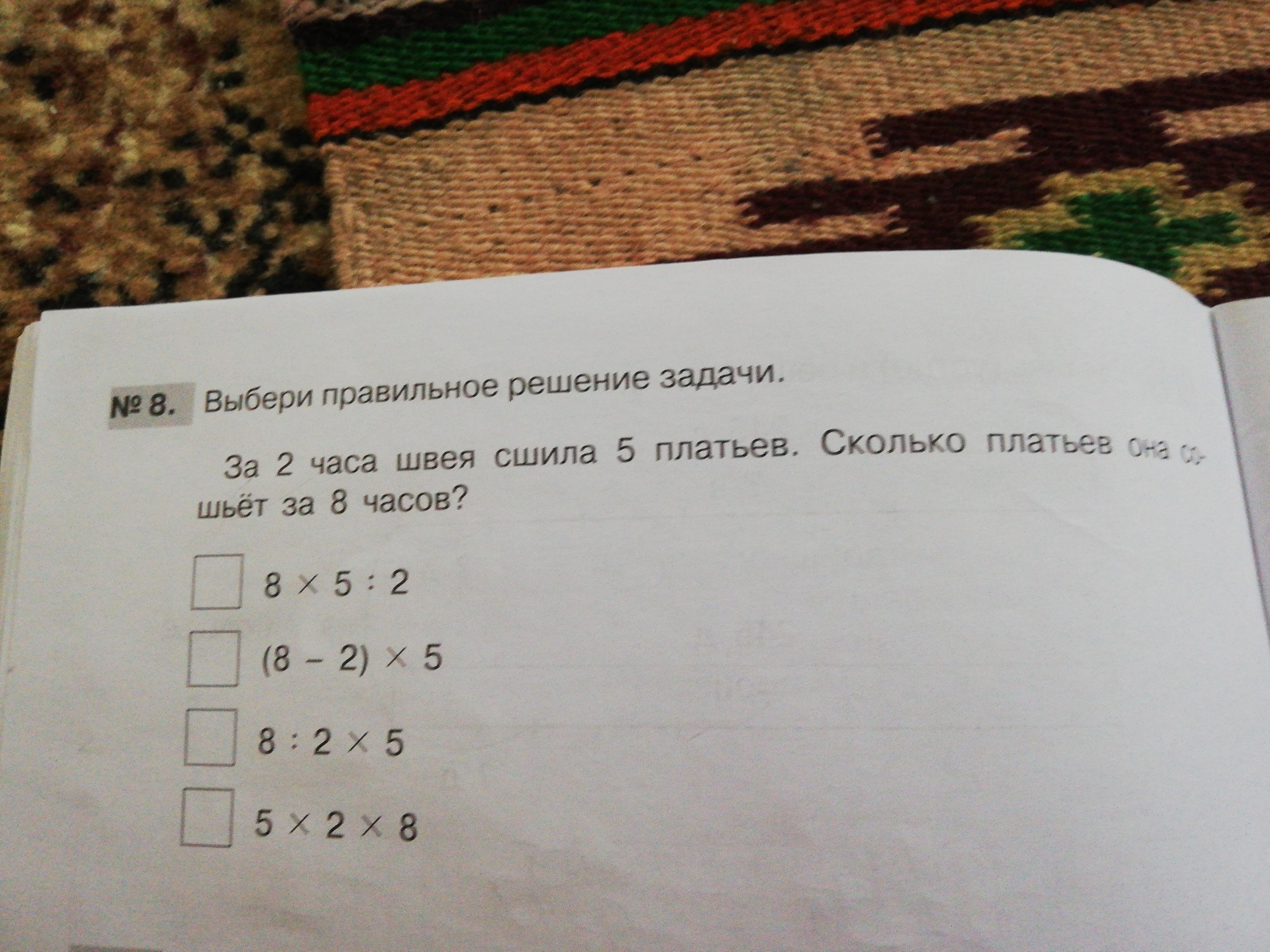 Можно иначе считать. 8 часов больше чем 2 часа в 8:2=4 раза.