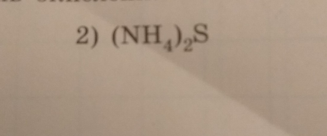 степень окисления серы-2 ,степень окисления аммония +1.Находим НОК,это 2 тоесть мы степень окисления серы делим на степень окисления аммония,тоесть равно 2 и поэтому мы ставим индекс 2перед формулой аммония