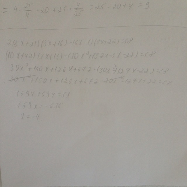 2*(5x+21)(3x+16)-(6x-1)(5x+22)=58