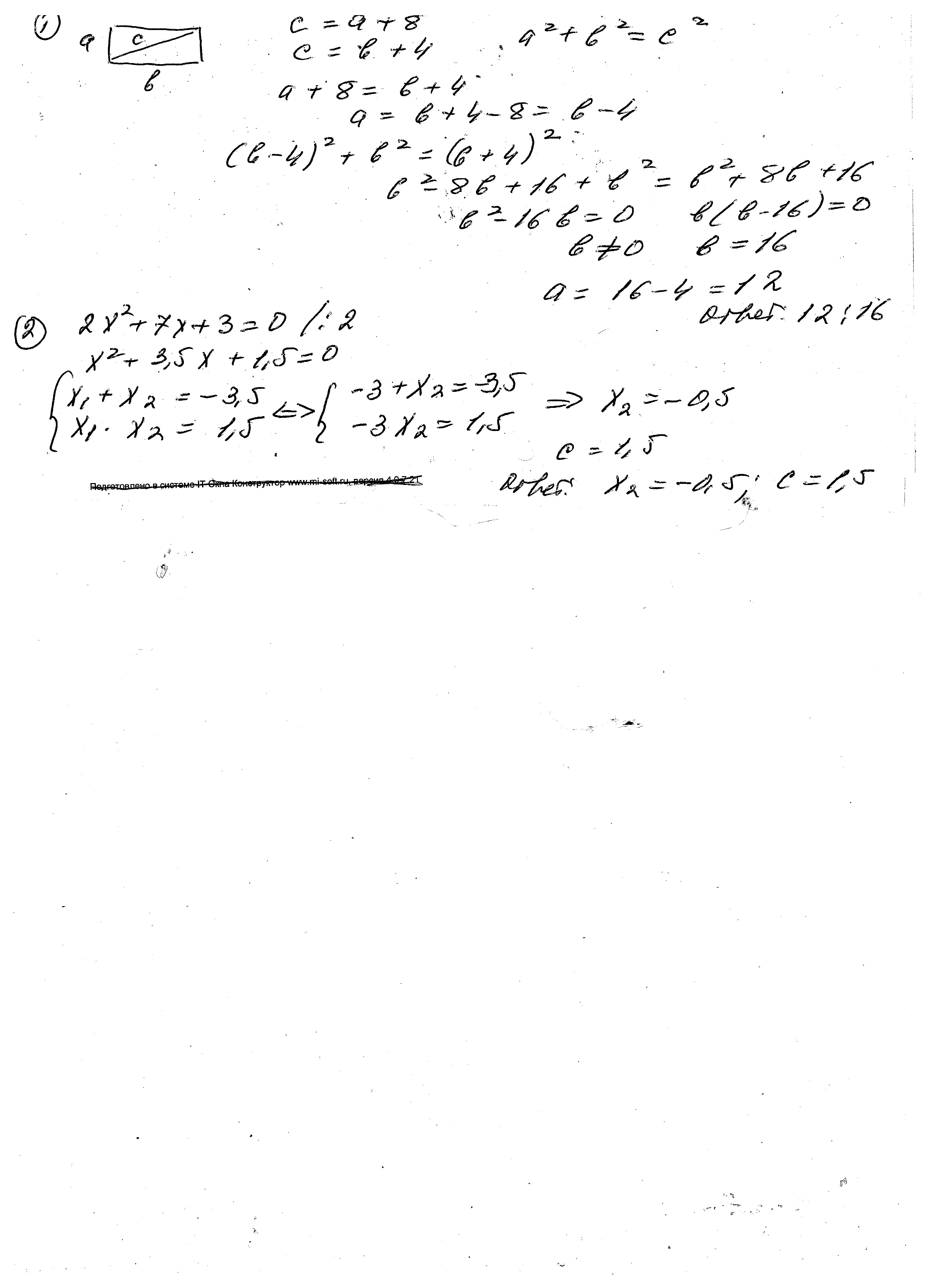 2.Число -3 есть коренем уравнения 2x2+7x+3=0 . Найти значение с и корень уравнения.