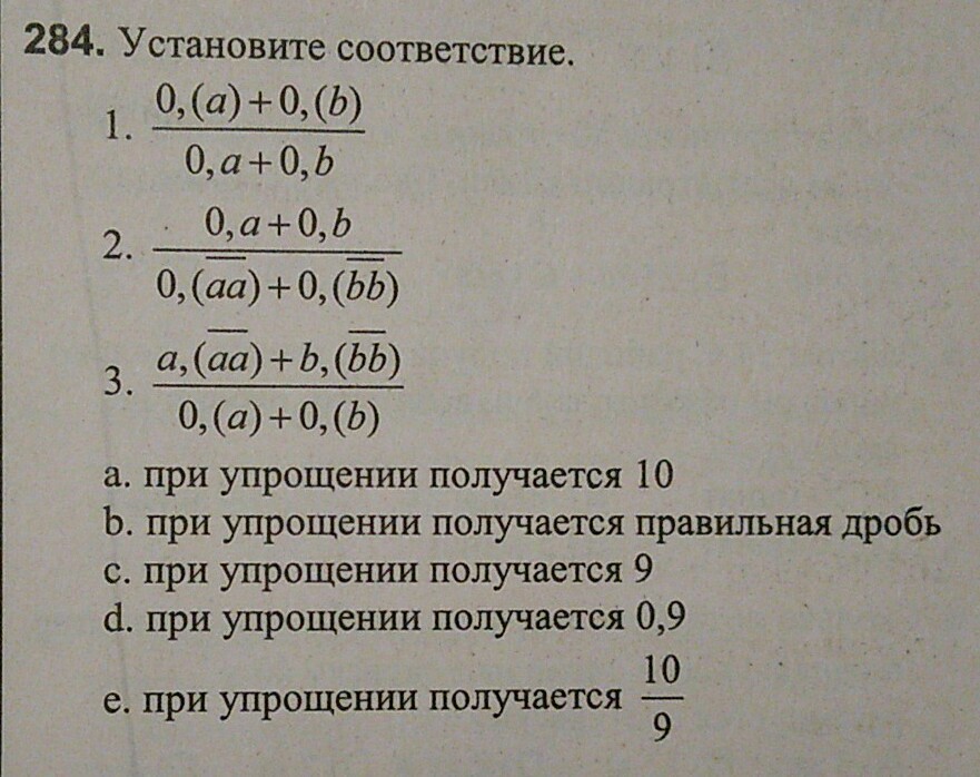 Дробь [(a+b)/9] : [(a+b)/10] = 10/9