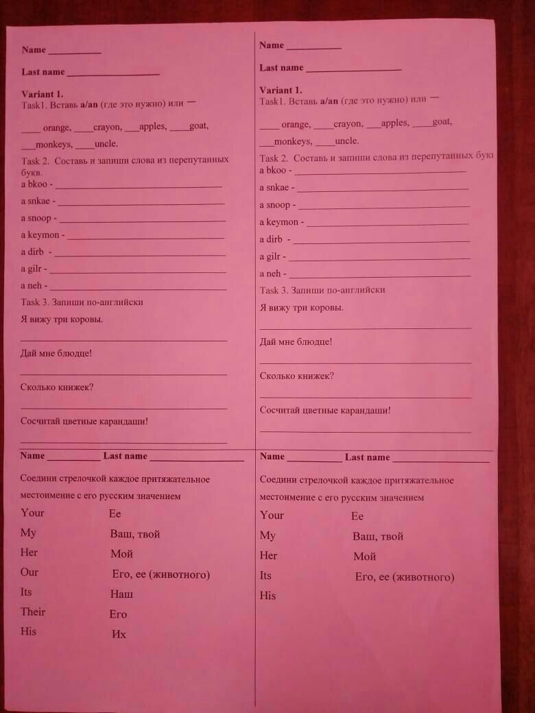 an orange, a crayon, apples, a goat, monkeys, an uncle.