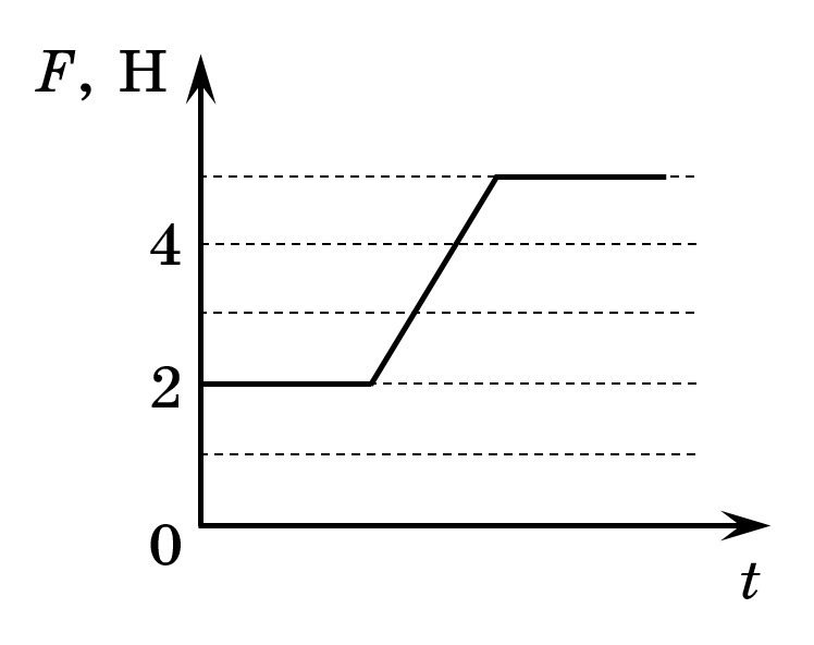 Сплошной цилиндрический груз, который стоял на дне бассейна с водой, равномерно поднимают на верёвке. На рисунке представлен график зависимости силы натяжения верёвки от времени. Определите плотность (в киллограмм на метр в кубе) груза. Плотность воды равна 1000 кг/м³.