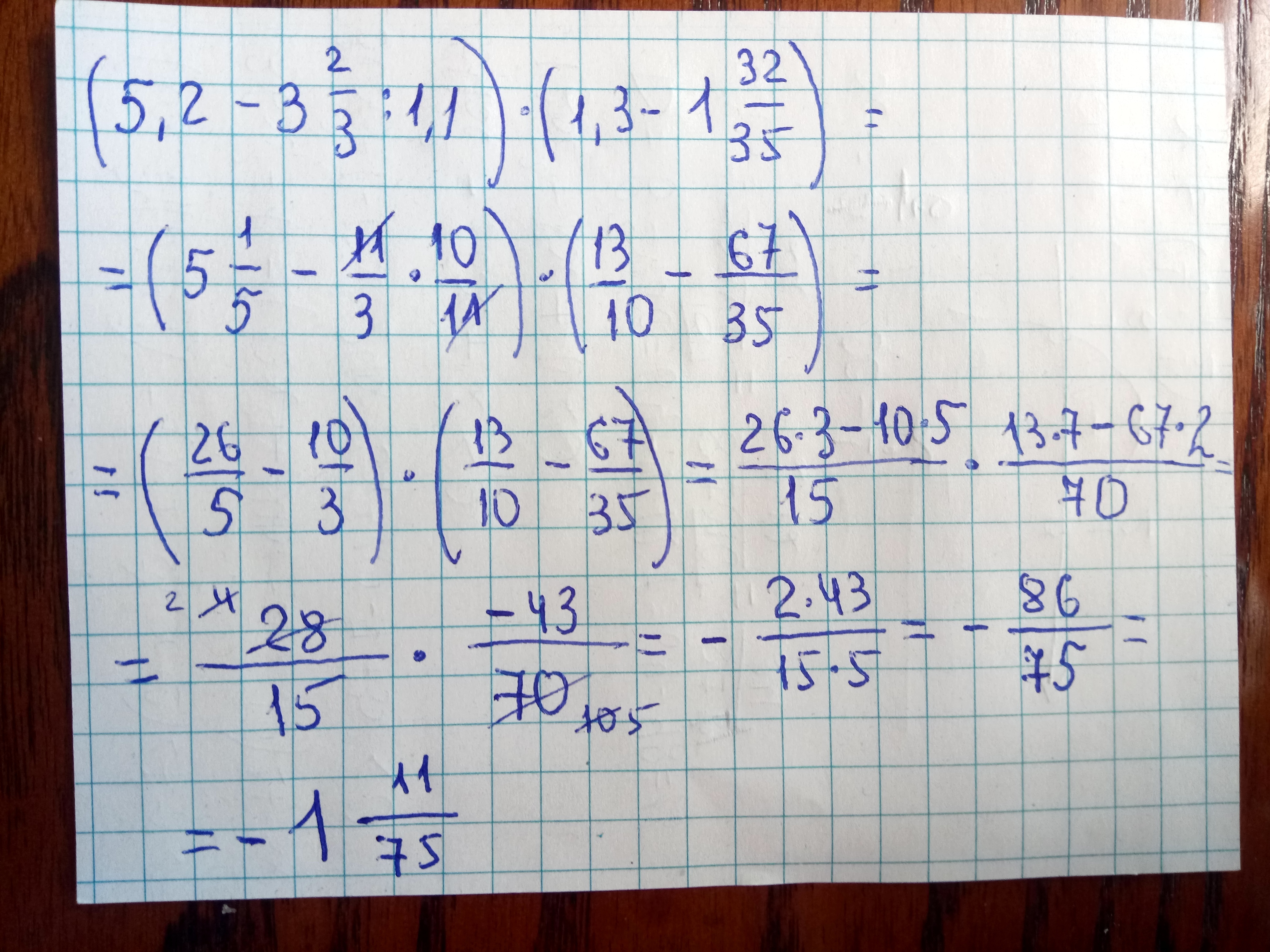 1.3-1 32/35=-(67/35-13/10)=-1/5(67/7-13/2)=-1/5(134/14-91/14)=-1/5(43/14)=-43/70