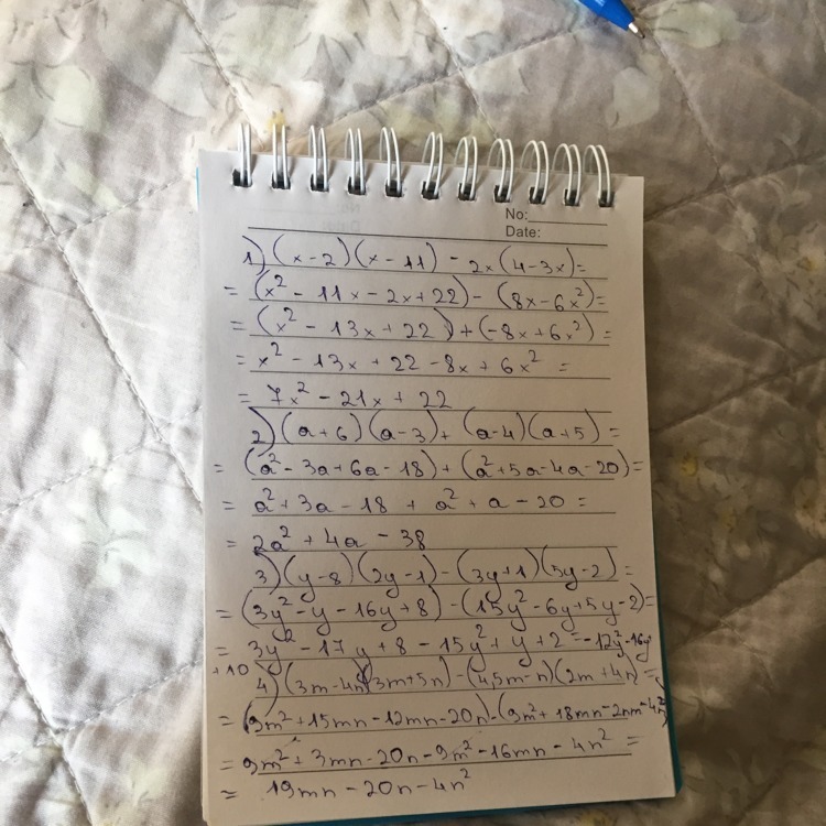 4)9m^2+15mn-12mn-20n^2-(9m+18n-2mn-4n^2)=9m^2+15mn-12mn-20n^2-9m-18n+2mn+4n^2=9m^2-16n^2+5mn-9m-18n