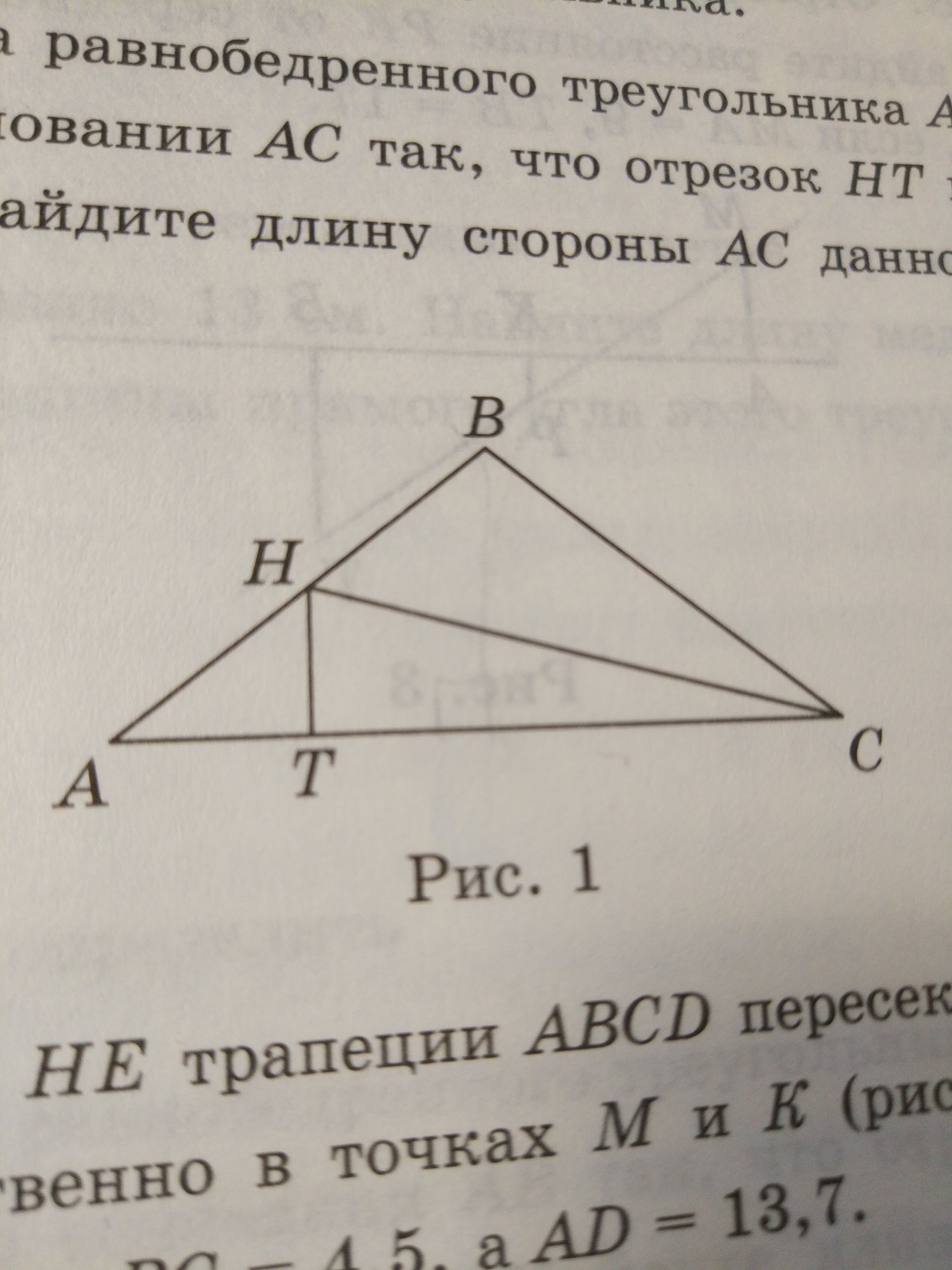 ДАНО: ∆ АВС ; АВ = АС ; АН = НВ ; НТ перпендикулярен АС ; АТ = 7,5 см