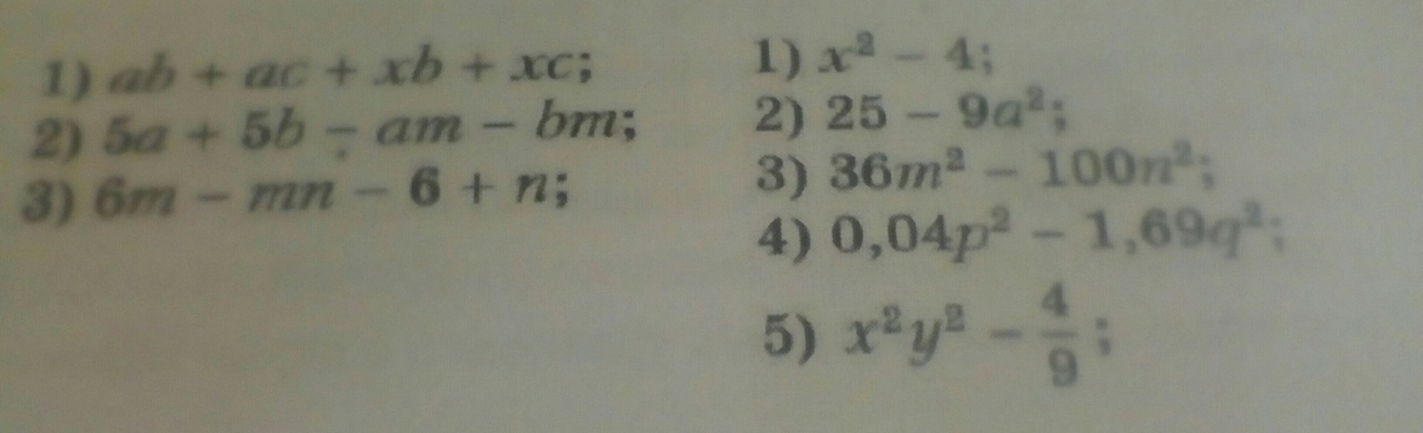 4) 0,04p² - 1,69q² = (0,2p - 1,3q)(0,2p + 1,3q)
