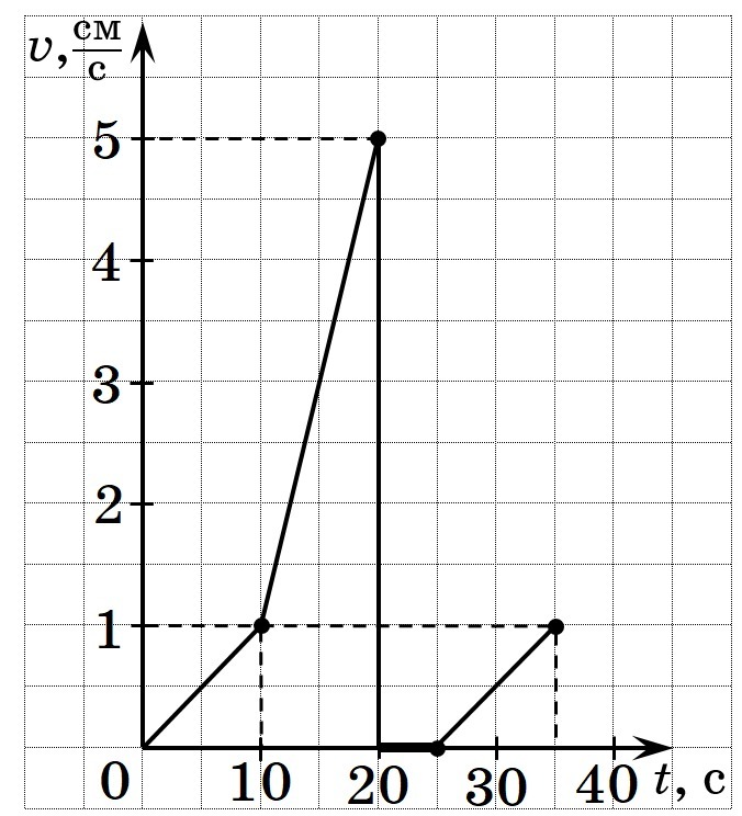 Черепаха ползла 10 с со скоростью 1 см/с, затем проползла полметра за 10 с, потом 5 с простояла, потом проползла 20 см со скоростью 2 см/с, Сколько времени ползла черепаха? Постройте график зависимости пути и скорости черепахи от времени. ЗДЕЛАТЬ ТОЛЬКО ГРАФИК