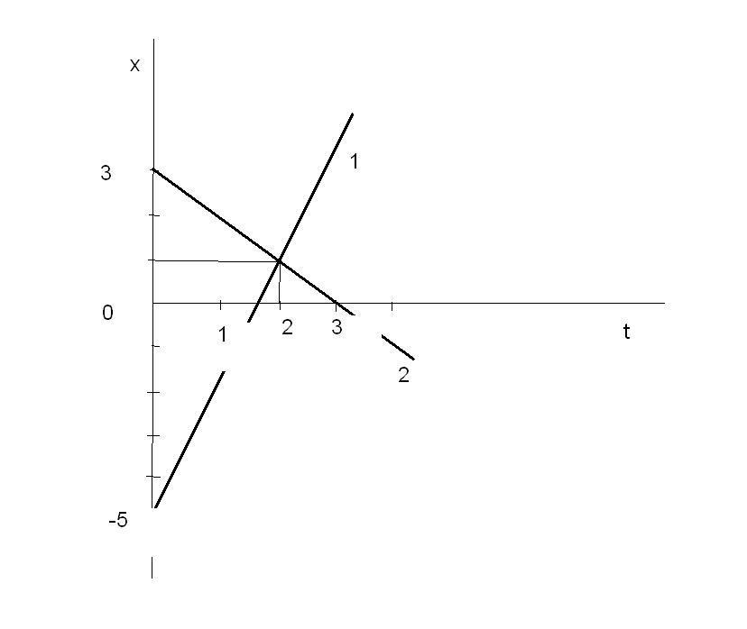 Два тела движутся вдоль оси x. Их уравнения движения (все величины заданы в СИ):