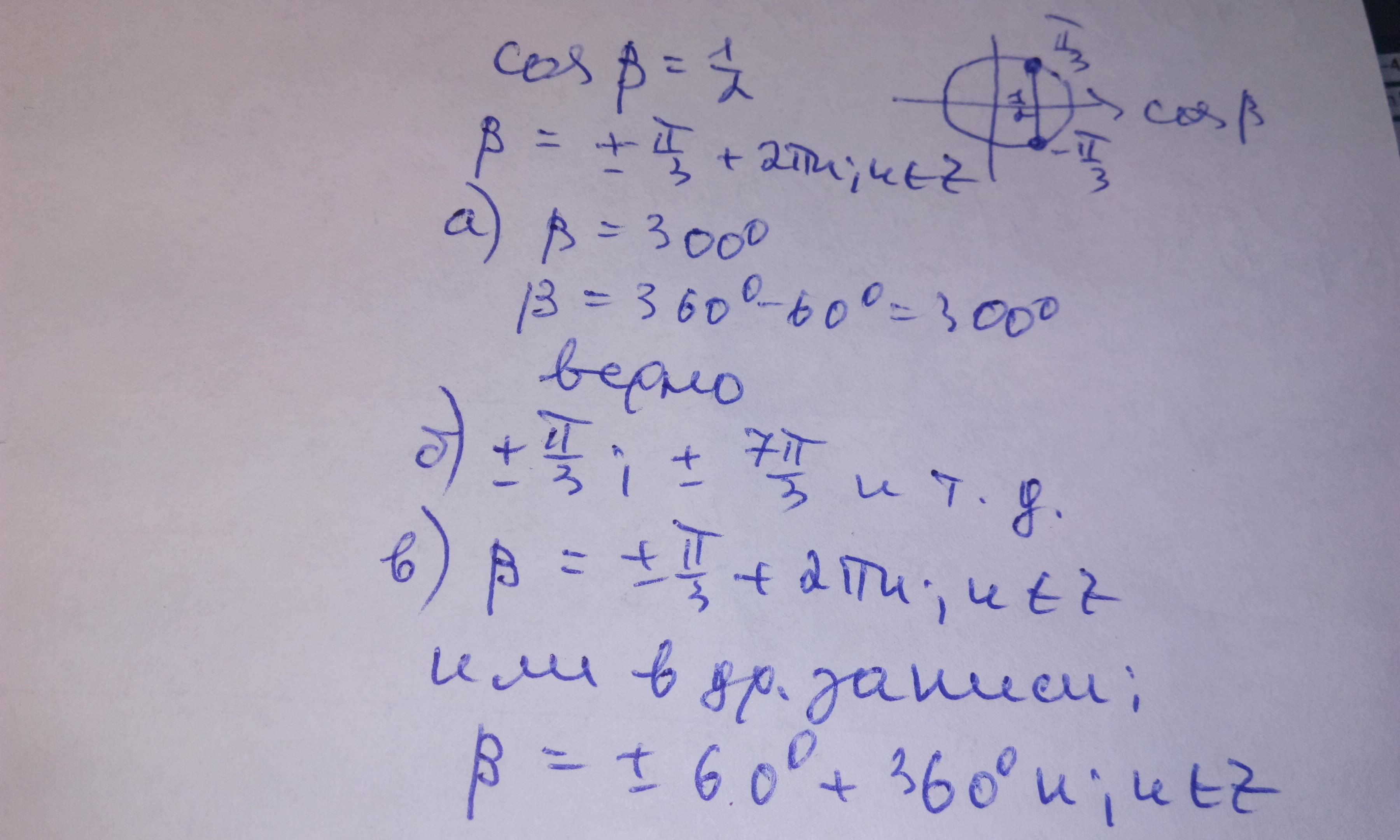 б)Укажите несколько углов, косинус которых равен 0,5 в)Укажите все углы, косинус которых равен 0,5