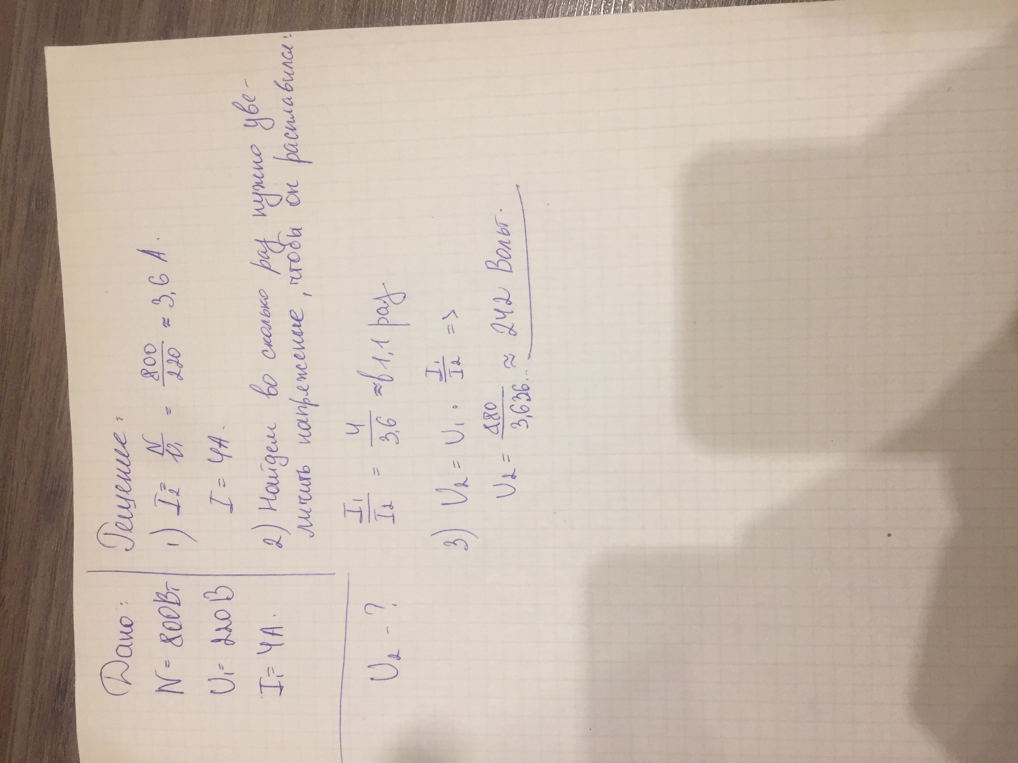 На плавком предохранителе для телевизора мощностью 800 Вт, работабщим на напряжении 220 В, написано 4 А. При каком значении напряжения (В) в сети он расплавится?