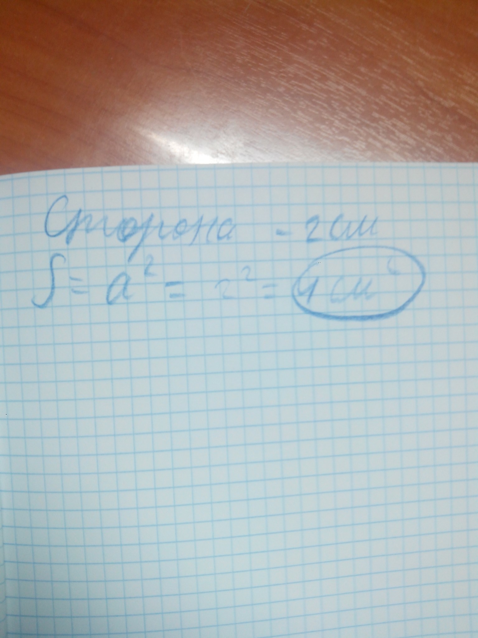 S=2^2=4 см^2